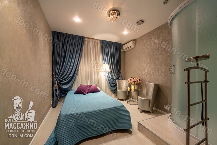 Отвечая на вопрос, которым я задался в коридоре: более насыщенный и брутальный облик нынче царствует и в массажных комнатах. Я нашел парочку фото, на которых хорошо видна разница. Причем шторы местами даже не поменялись, но если раньше они были темной акцентной деталью, то теперь нейтрально встали в обновленный интерьер как родные. Отдельно меня порадовал апгрейд душевых: с капсульных кабинок до полноценной части интерьера:
