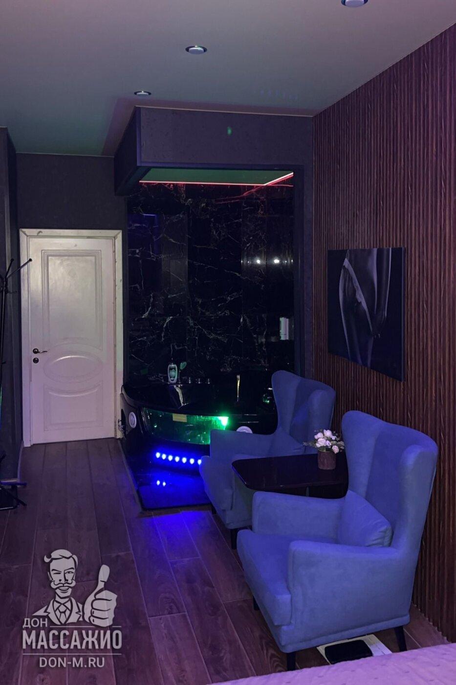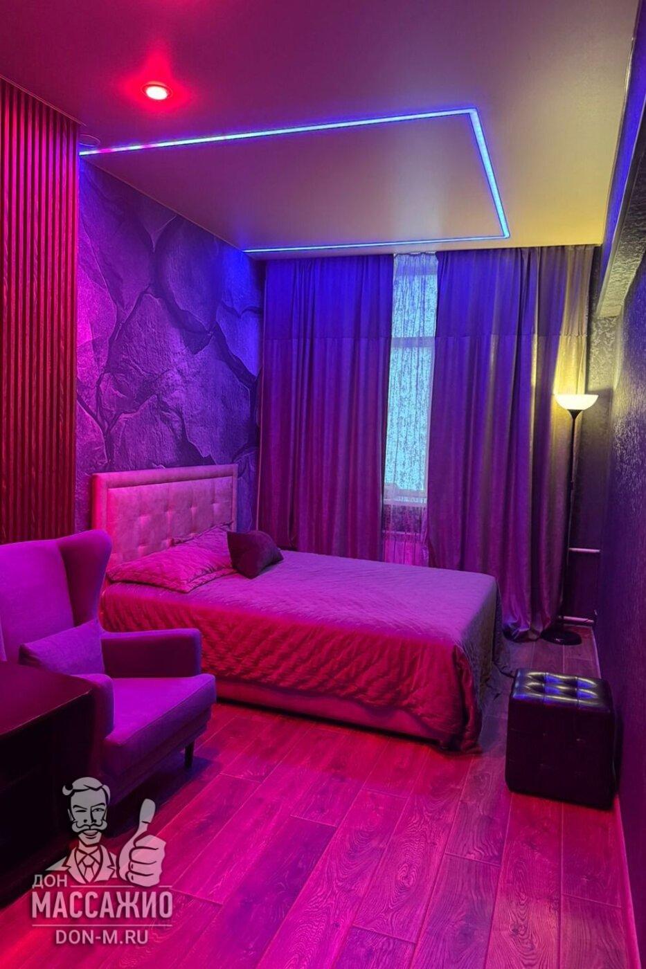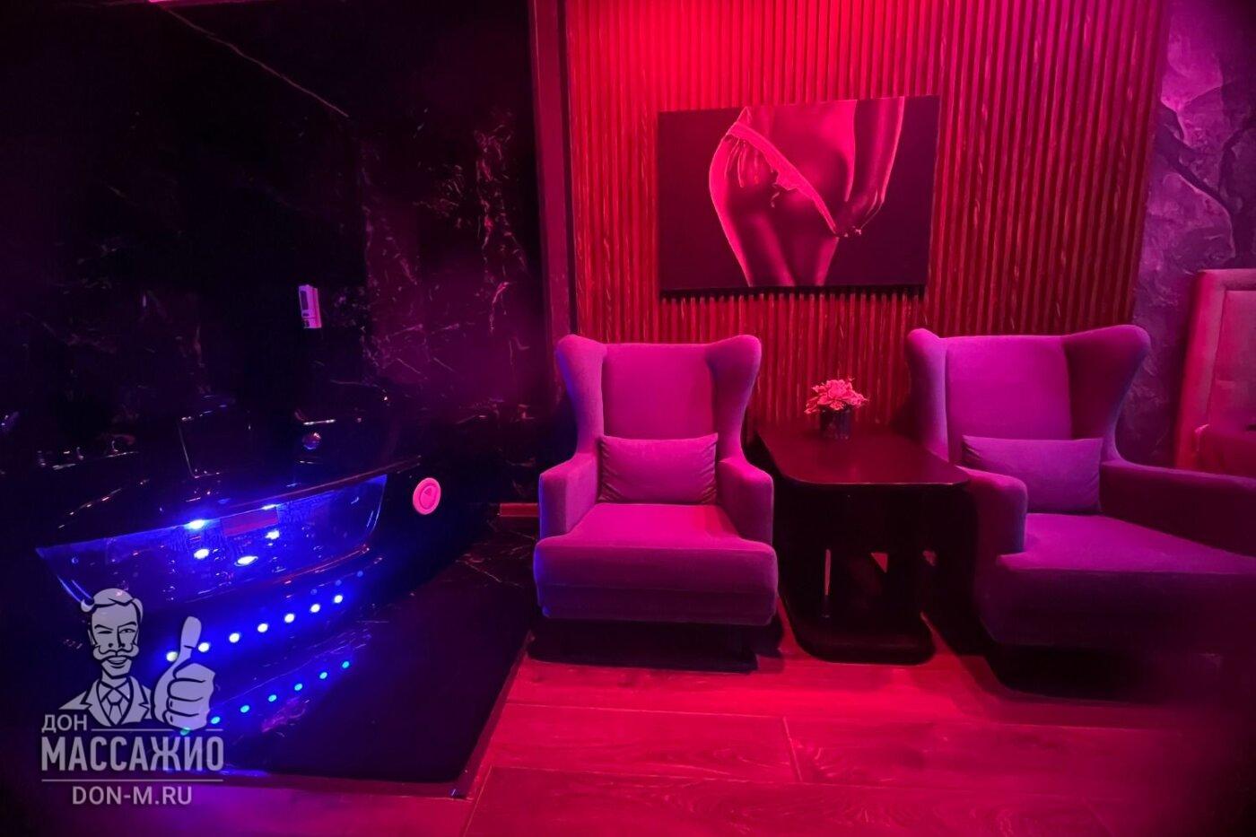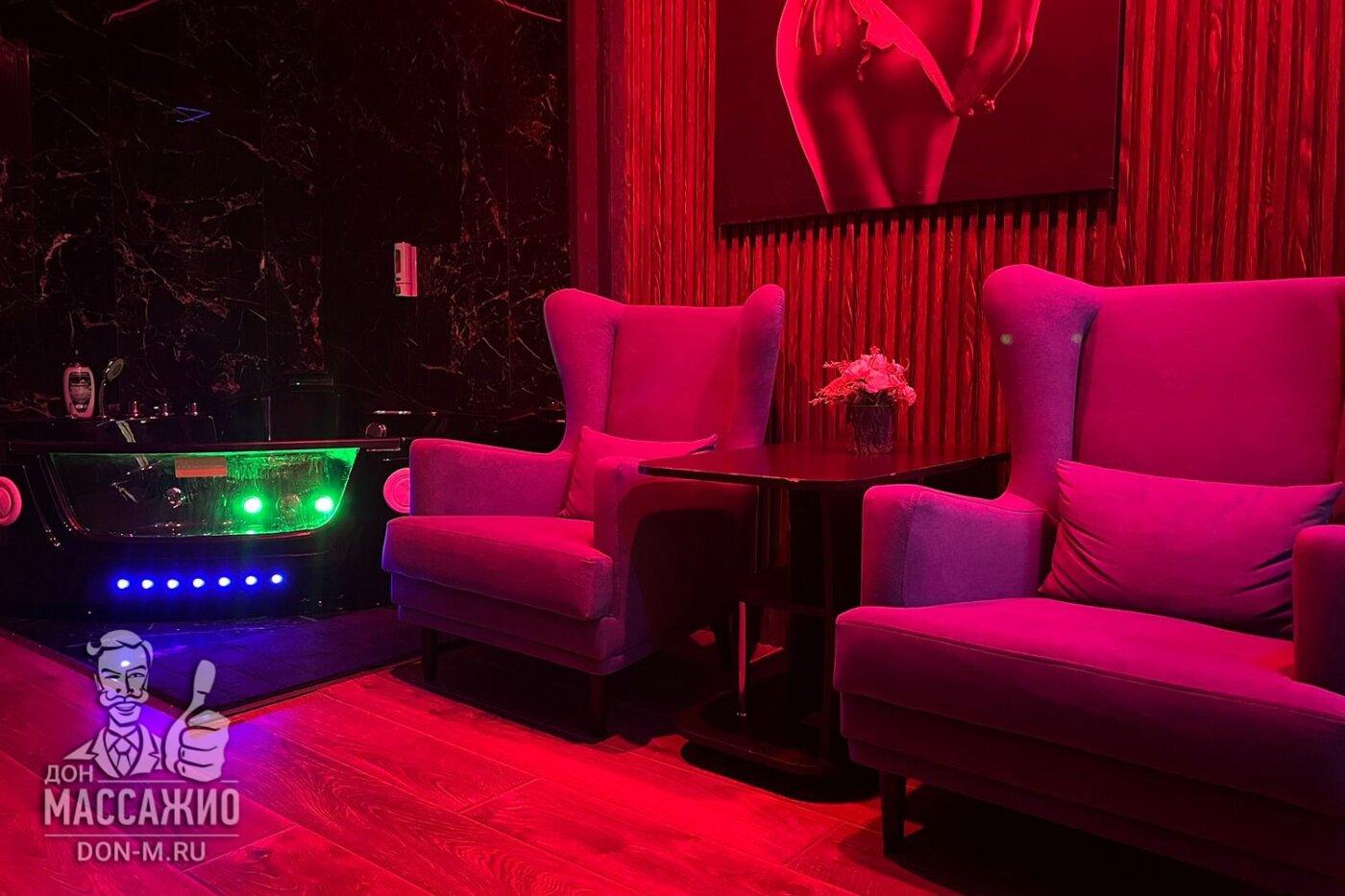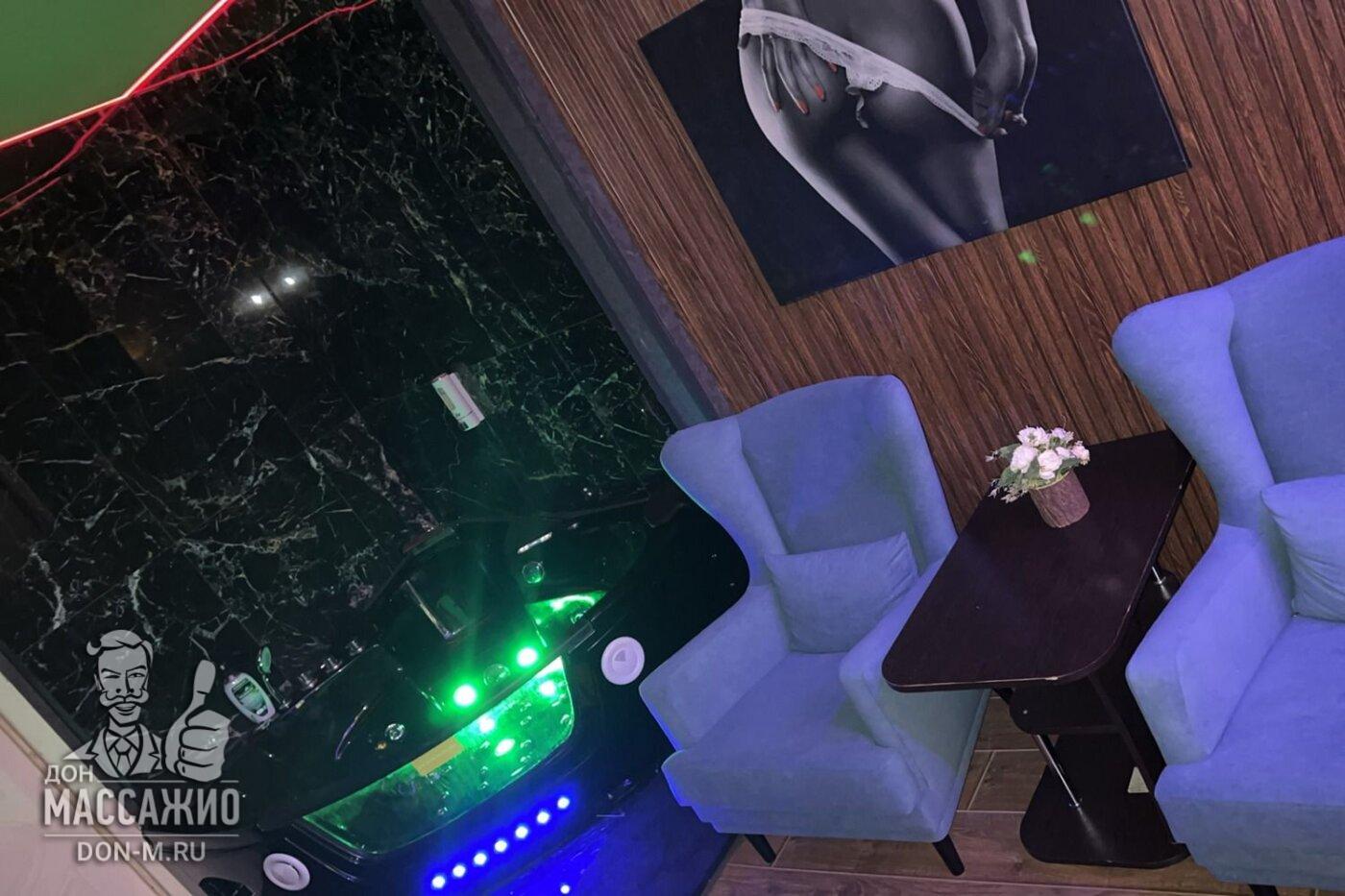 Пип-шоу (массажистка ласкает себя, гость наблюдает за ней)